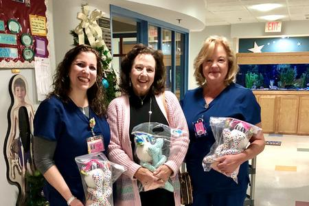 For the 12th consecutive year Colin's Angels was happy to partner and deliver to St. Christopher's Hospital For Children in Philadelphia, Pa., a monetary donation along with 16 Unicorn and Monster Pillows, 23 "Scootch Dogs" "Feel Better" Monkeys and "Friendly" Monsters, 50 "Comfort" Pillow Cases, 26 "Hero" Capes, 10 Holiday Activity Packs and 10 Handmade Fleece blankets.